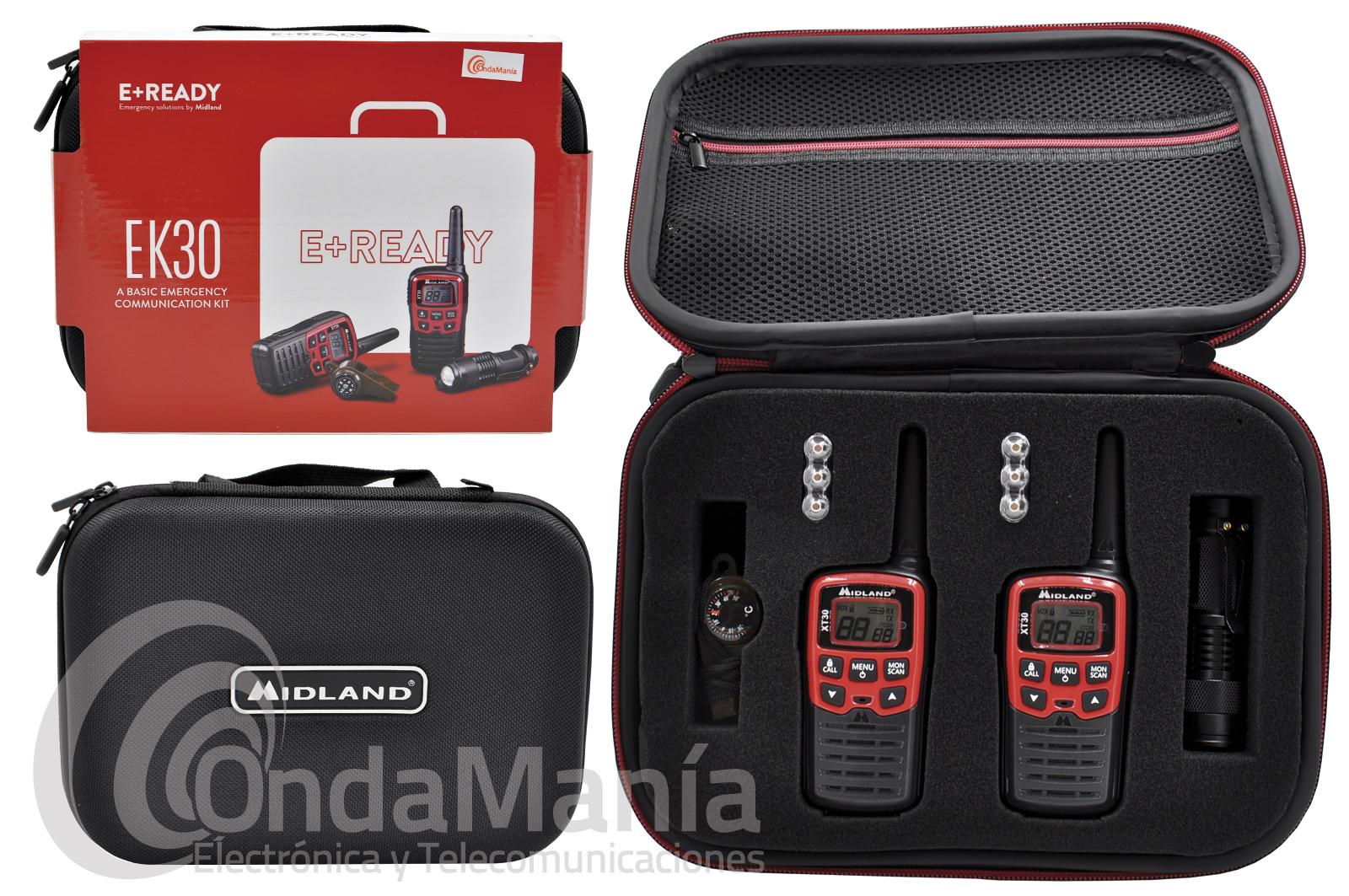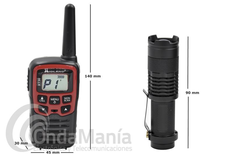 El Midland EK30 no son solo un par de walkie talkies bidireccionales, sino que son un verdadero kit de emergencia, que también incluye un silbato con brújula y cordón para atar alrededor del cuello y una linterna de aluminio compacta y potente con clip para cinturón o bolsillo.
