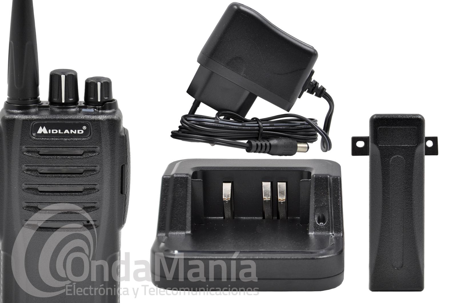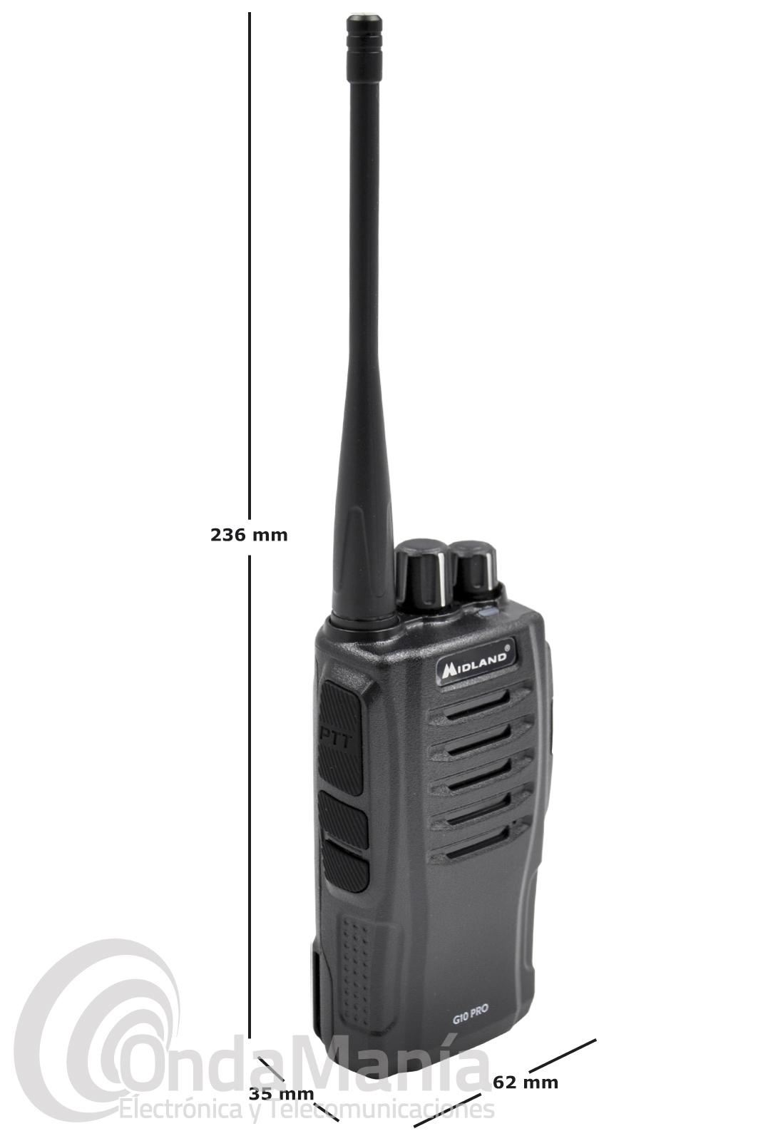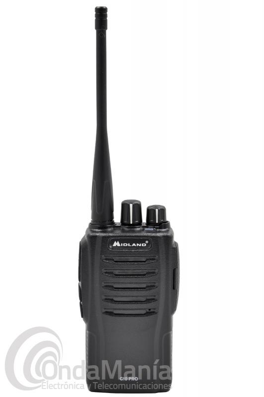 PMR-446 de uso libre Midland G10 PRO, nueva versión del modelo Midland G10, cuenta ahora con 32 canales programables y tres niveles de potencia. Además, puede distribuir de forma más correcta la potencia en función de las condiciones de funcionamiento, lo que permite un uso más económico de la batería. Incluye batería de Li-ion con 704V y 1200 mAh. y cargador de sobremesa
