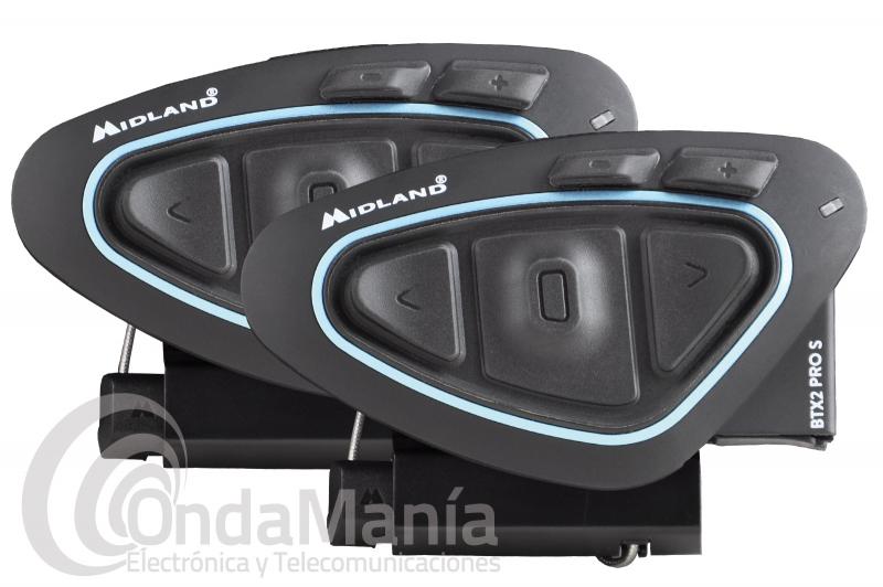 Midland BTTX2 Pro S es el primer intercomunicador de gama media con doble chipset Bluetooth 4.2: 4 motos, con piloto y pasajero (8 personas) conectados en modo conferencia, hasta 6 personas en modo uno a uno.