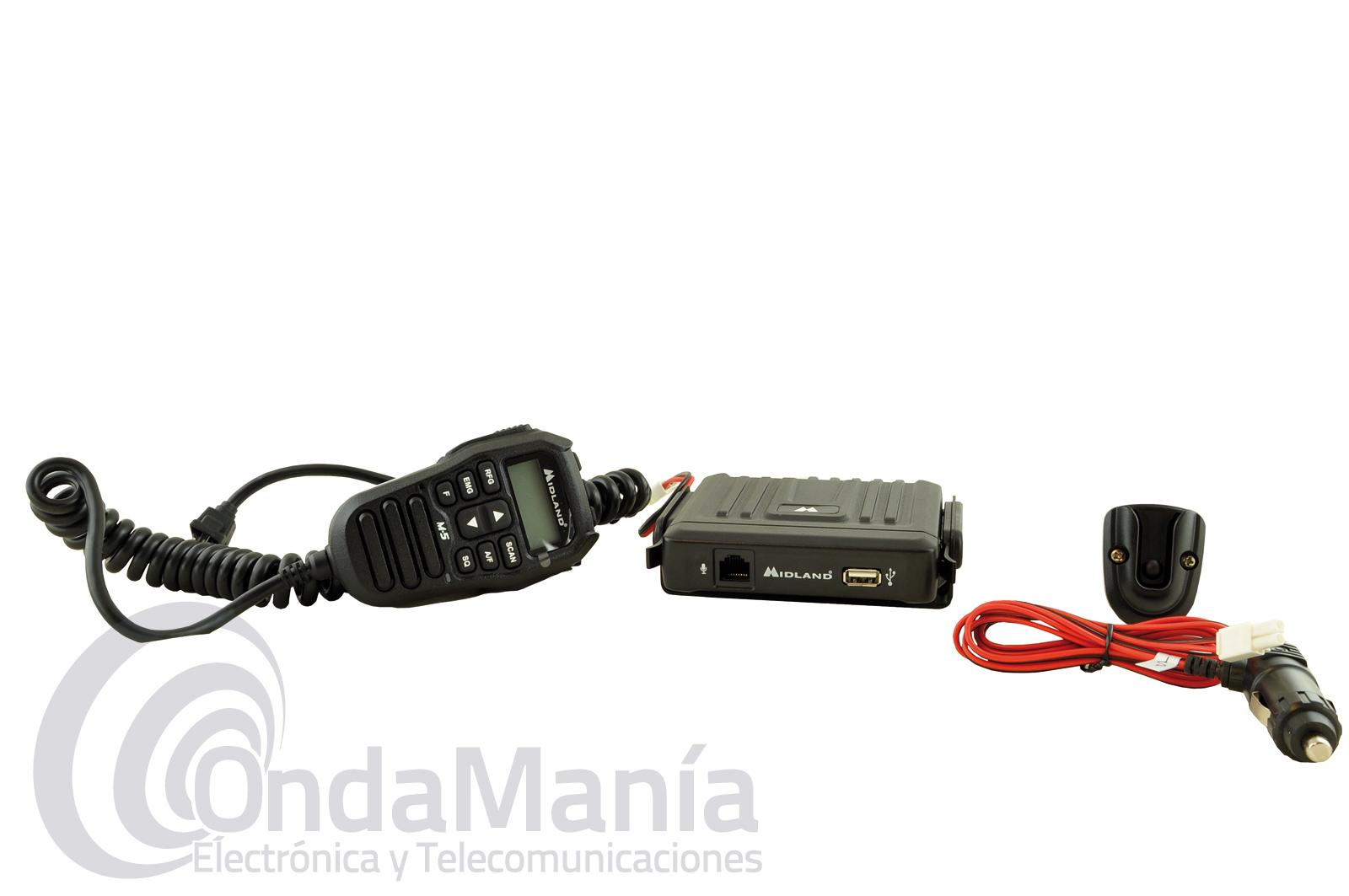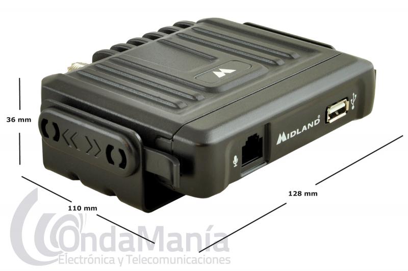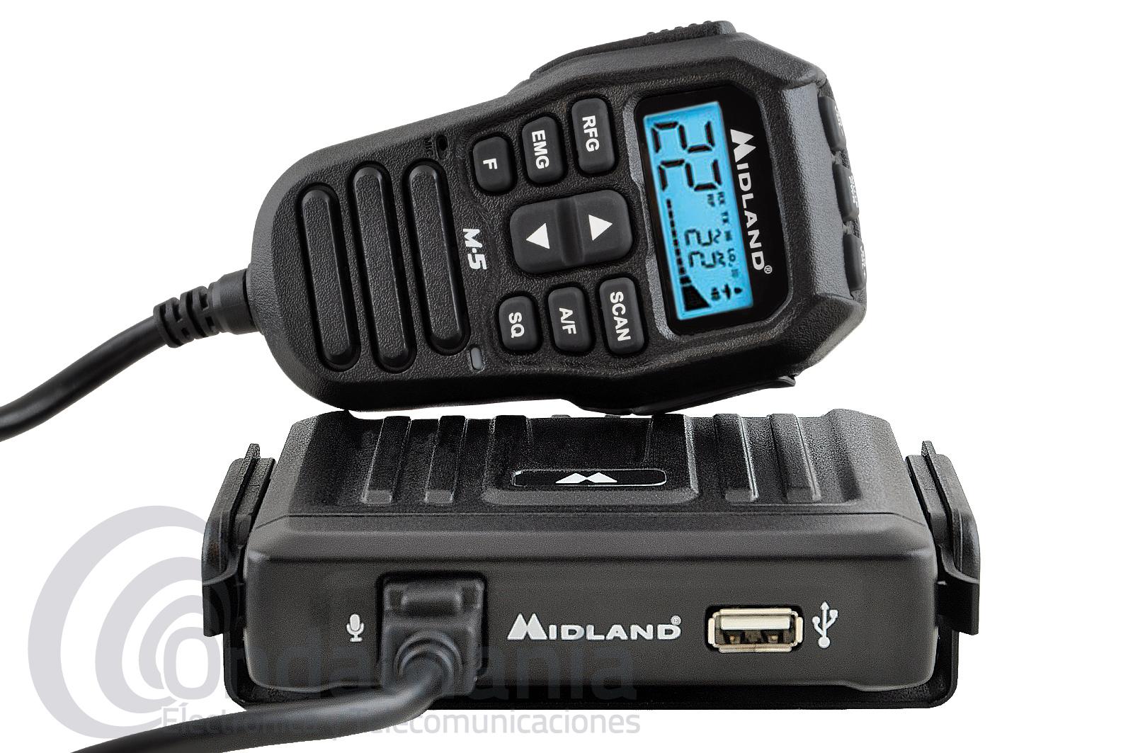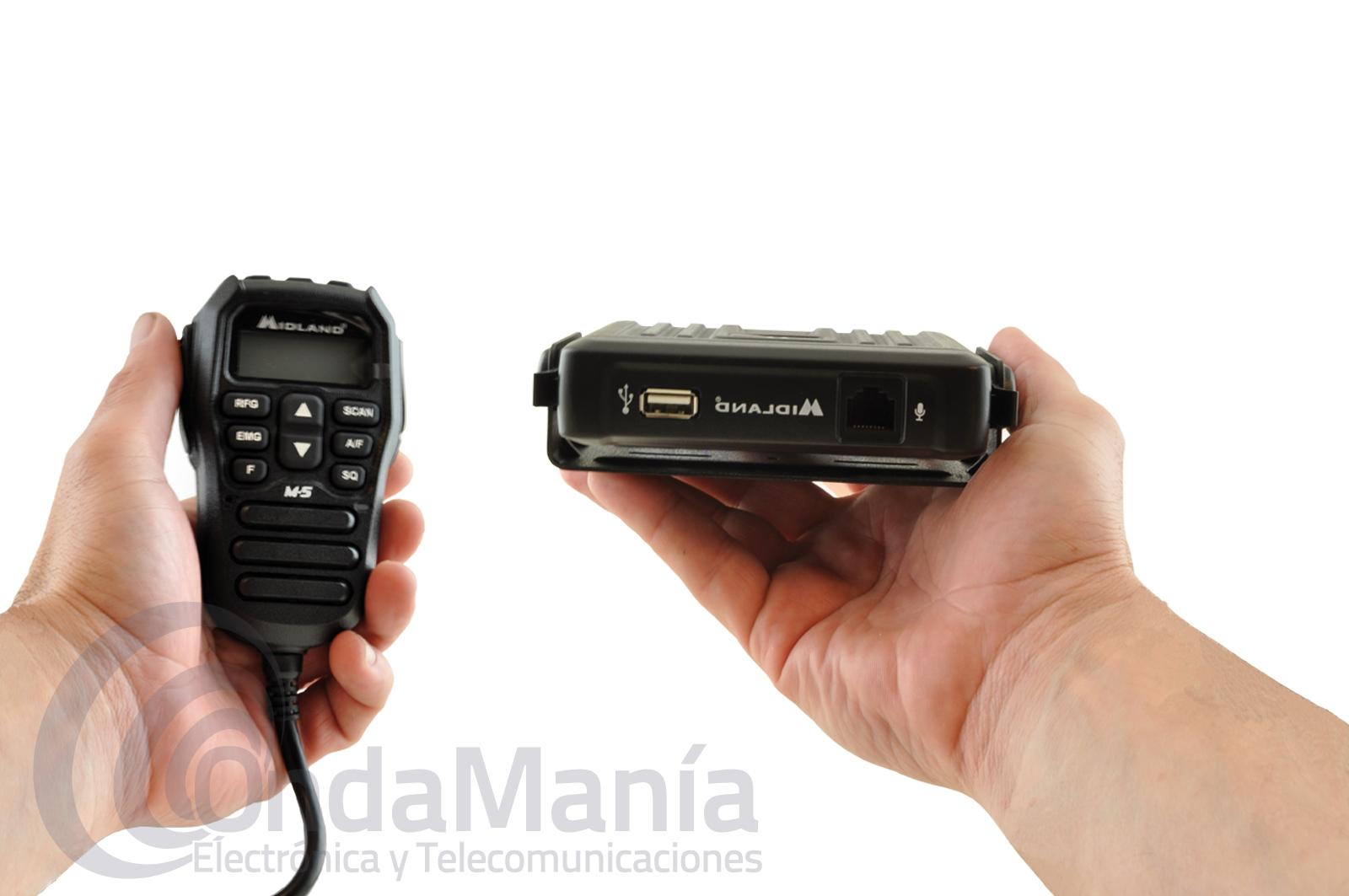 MIDLAND M-5 EMISORA ULTRA COMPACTA CON MICROFONO MULTICONTROL CON LCD - Emisora de banda ciudadana ultra-compacta muy robusta, fabricada en metal fundido incluye una toma frontal USB y un micrófono que incluye todas las funciones que necesitamos para manejar la emisora, además de los controles el micrófono incluye un display LCD retroliluminado en el cual podemos ver el canal, smeter y resto de configuraciones,...