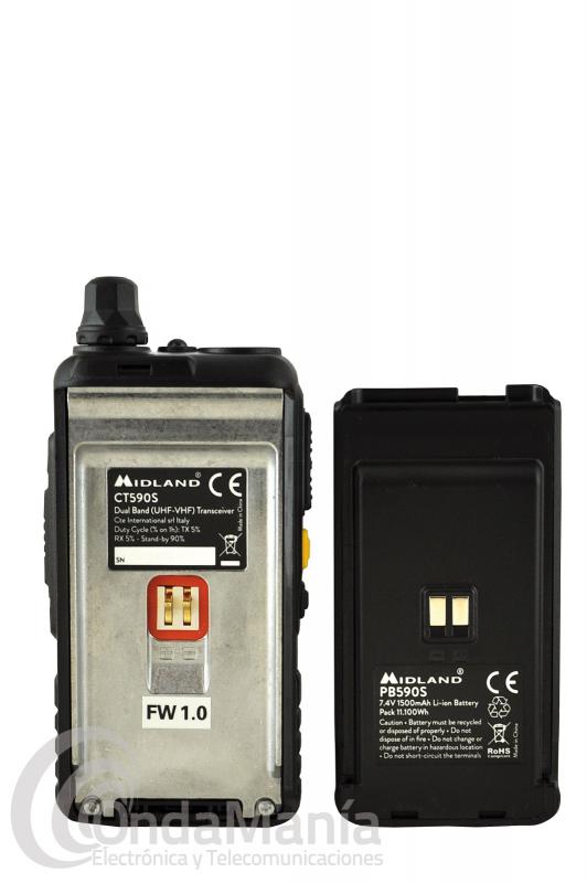 El Midland CT-590S es un walki talkie doble banda fácil de usar, ideal para aquellos que necesiten un dispositivo básico pero al mismo tiempo que esté equipado con múltiples funciones y características. La robustez y fiabilidad están garantizadas gracias a su chasis de aluminio.