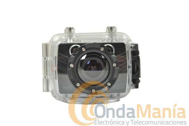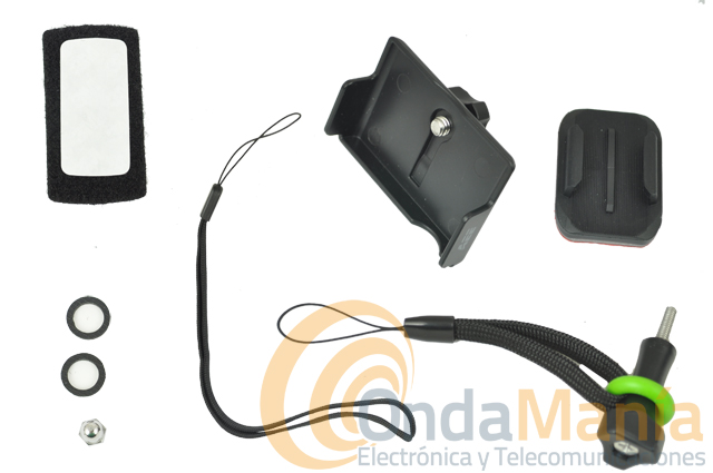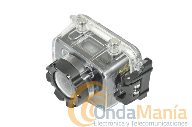 - Posee una carcasa impermeable (incluida), con un grado de impermeabilidad de IP68, soporta una profundidad máxima de 30 metros y con dos diseños de cubierta