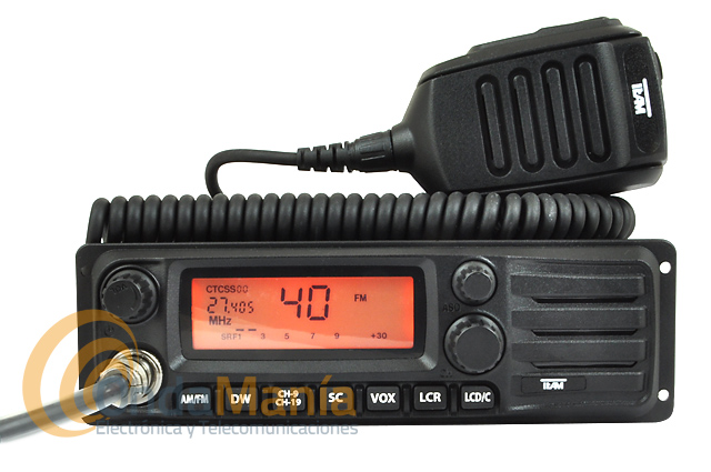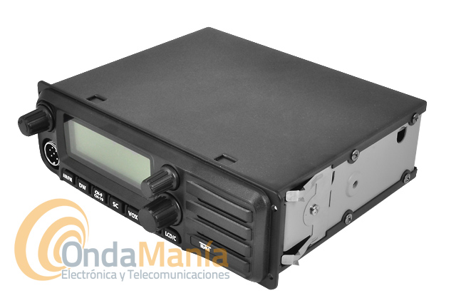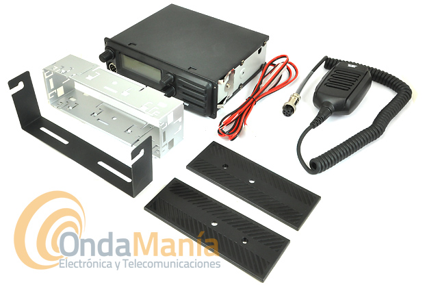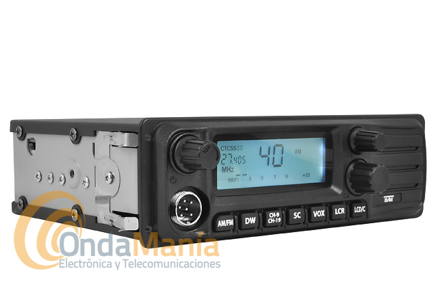 Transceptor de 27 Mhz bi-tensión se puede conectar a 12 o 24 VCC directamente, dispone de 40 canales en AM y FM, 4 W de potencia, se puede montar en huecos de auto-radio DIN, micro con UP/DOWN, indica la frecuencia y canal, squelch automático,...