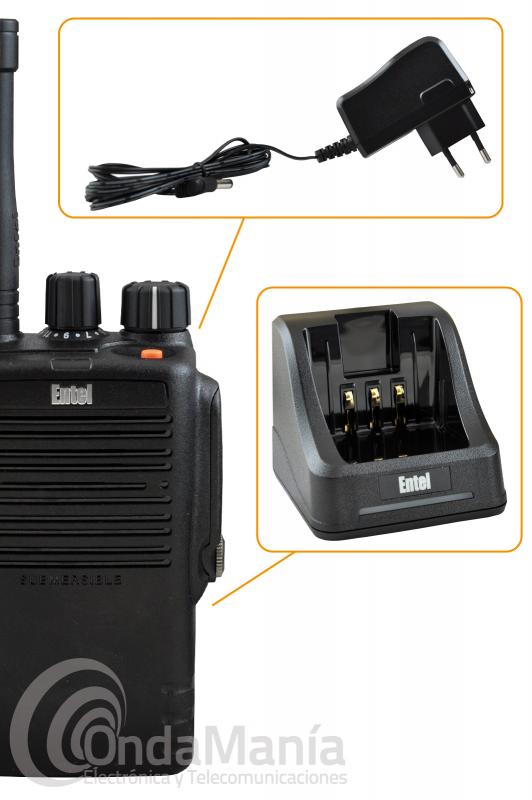 El Entel DX-446E es un PMR/DMR 446 de uso libre sumergible con normas IP-68 y MIL-STD 810 C/D/E/F/G, con 16 canales y 2 zonas programables, incluye bateria de litio con 7,6V y 2000 mAh, cargador rápido de sobremesa,....