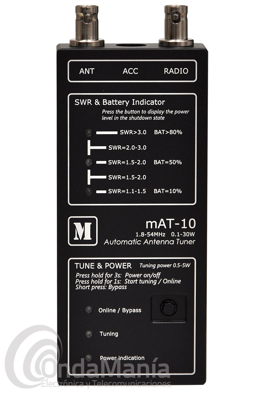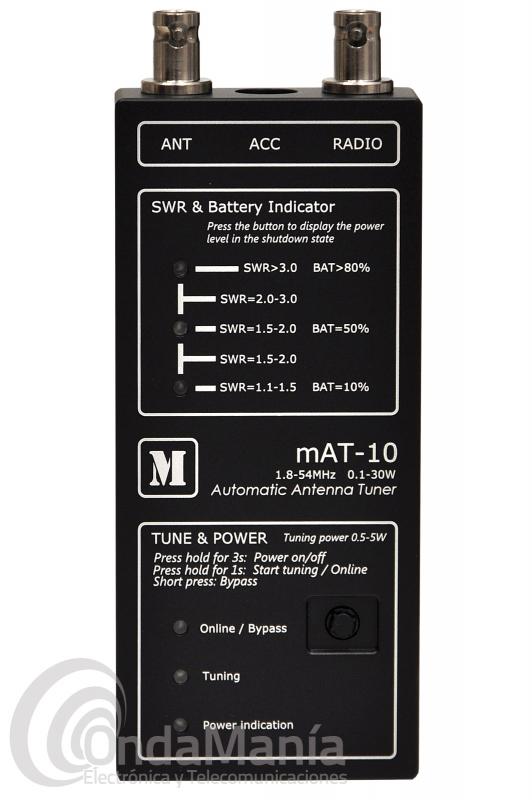El mAT-10 tiene un solo botón, que puede realizar múltiples funciones. Ya sea para los Yaesu FT-817/818 u otros transceptores, este botón tiene las funciones de cambiar la fuente de alimentación, iniciar la sintonización, cambiar el estado en línea / bypass, etc. La mitad inferior del sintonizador tiene tres luces indicadoras, que se utilizan para indicar " online / bypass ", proceso de ajuste y fuente de alimentación.