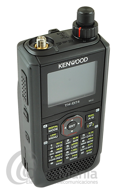 El Kenwood TH-D74 es un walkie doble banda VHF / UHF que está equipado con características novedosas y las ventajas de un transceptor digital que soporta D-STAR, APRS. Incluyendo un display TFT a color que ofrece excelente visibilidad tanto de día o de noche, incluye GPS y Bluetooth, así como Micro USB y micro micro SD/SDHC. Este walkie talkie está listo para disfrutar de los excitantes desarrollos en las comunicaciones vía radio.