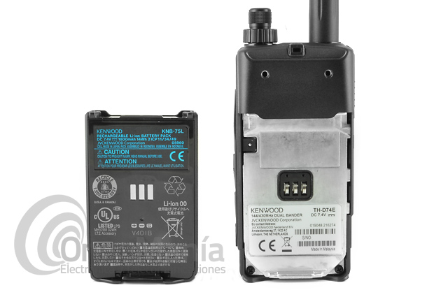 TH-D74E Accesorios suministrados: Walky, Antena, batería Li-ion (7,4 V/1.800 mAh), alimentador/ cargador CA, clip de cinturón, manual de instrucciones y pinganillo.