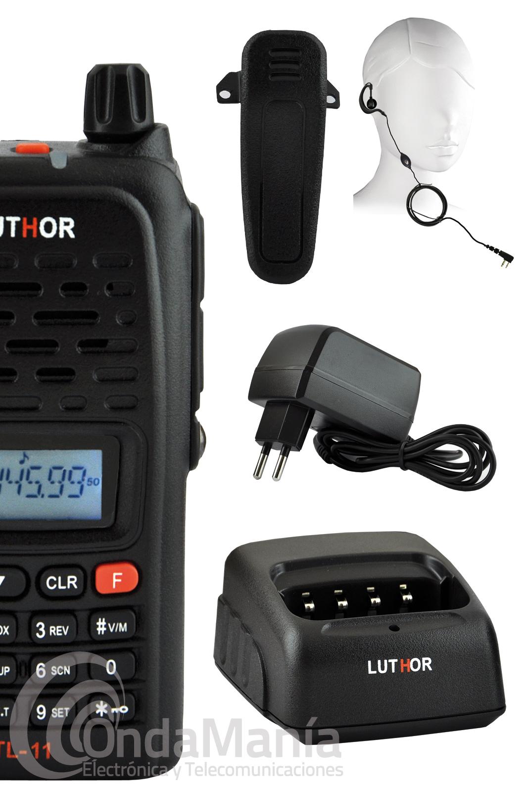 Walkie Luthor TL-11, batería de Ion-litio, antena, clip de cinturón, cargador rápido