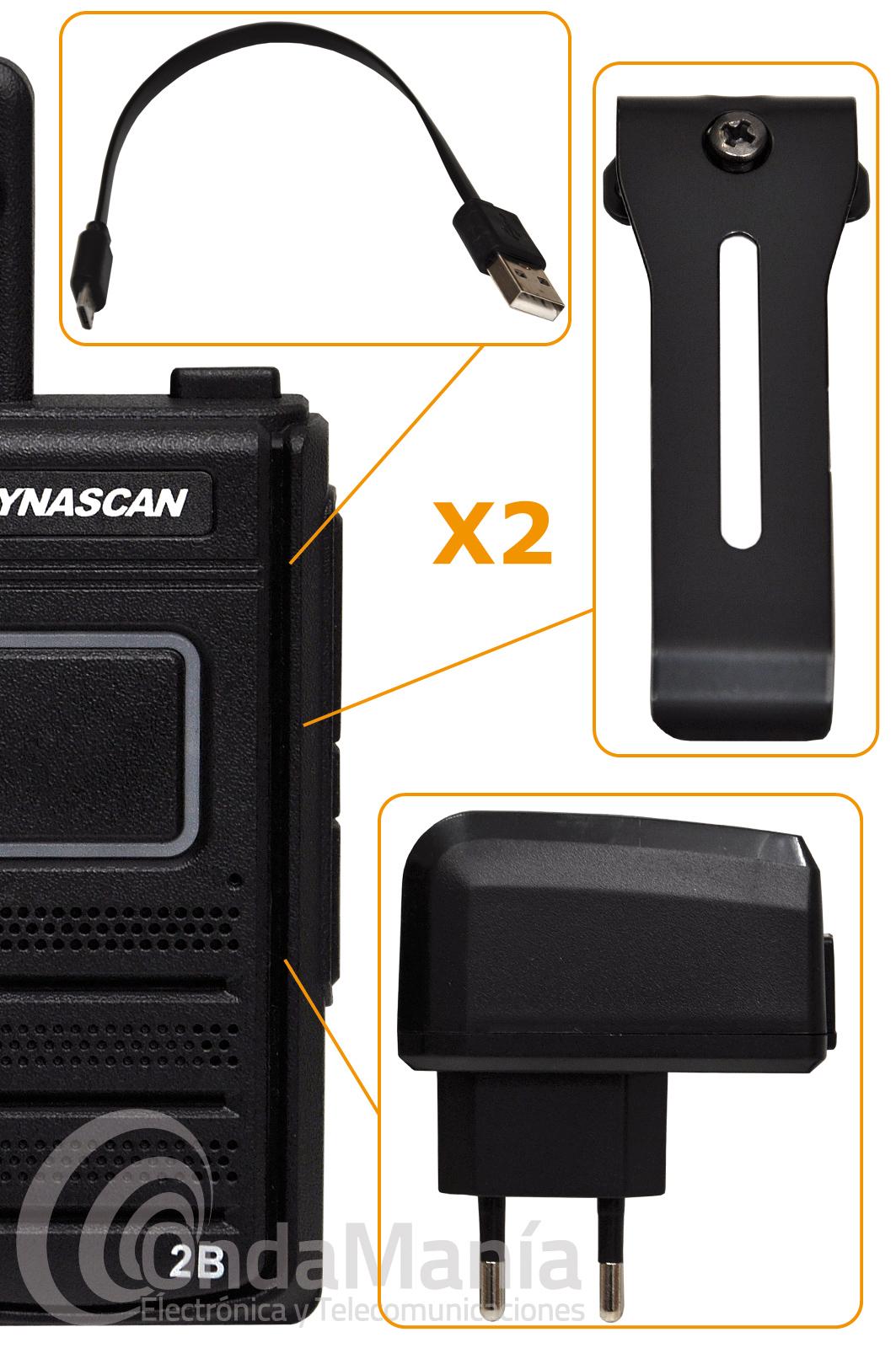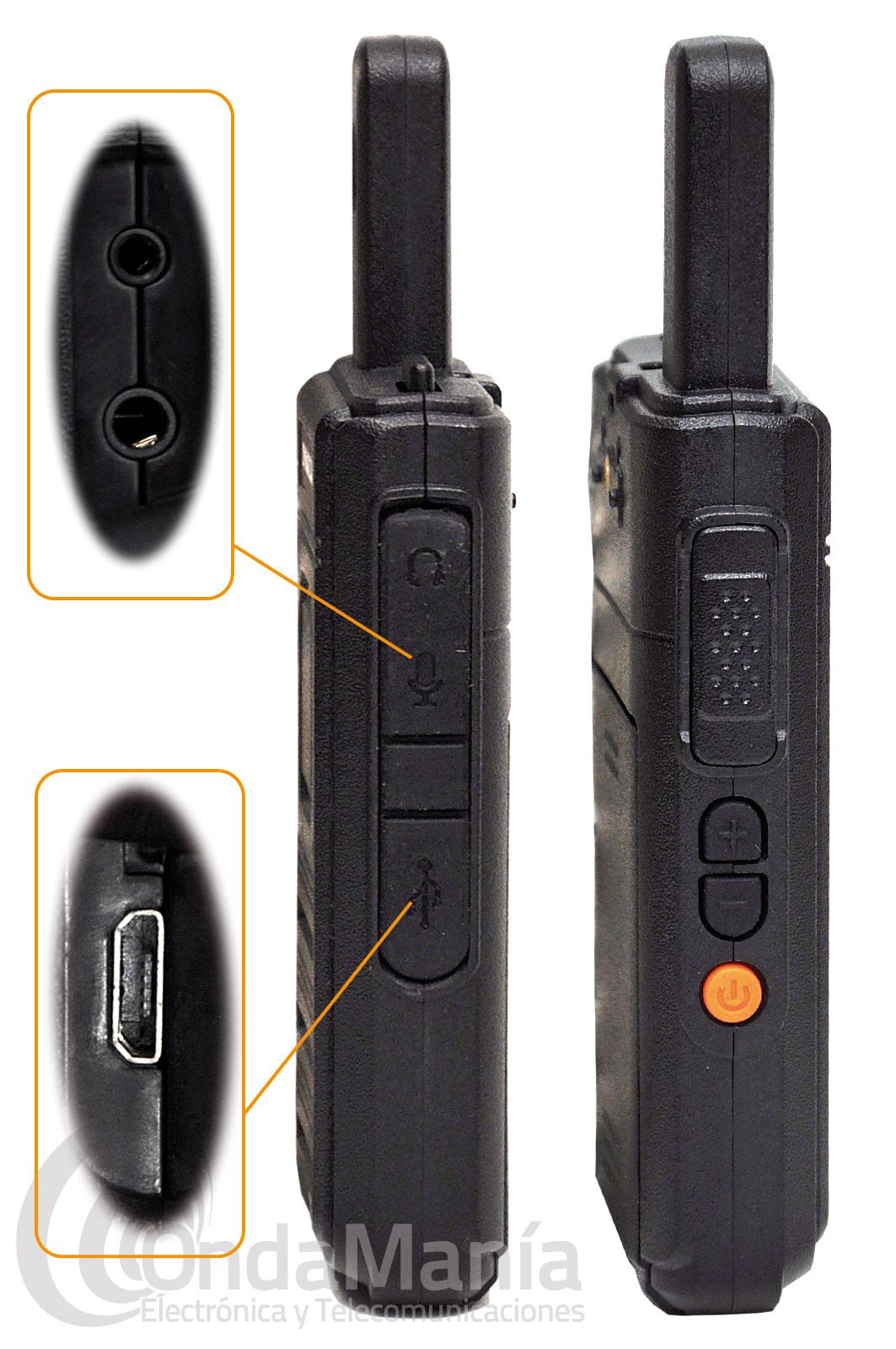 Pareja de walki talkis de uso libre PMR-446 de reducido tamaño y muy ligeros, dispone de 16 canales, alarma de batería baja, indicación de comandos por voz, secrafonía, batería de ion-litio con 3,7 V y 1200 mAh, cargador con cable USB, dispone de alerta de batería baja, bloqueo de canal ocupado, VOX,…. Ideal para equipos ciclistas, tiendas, almacenes, restaurantes,...