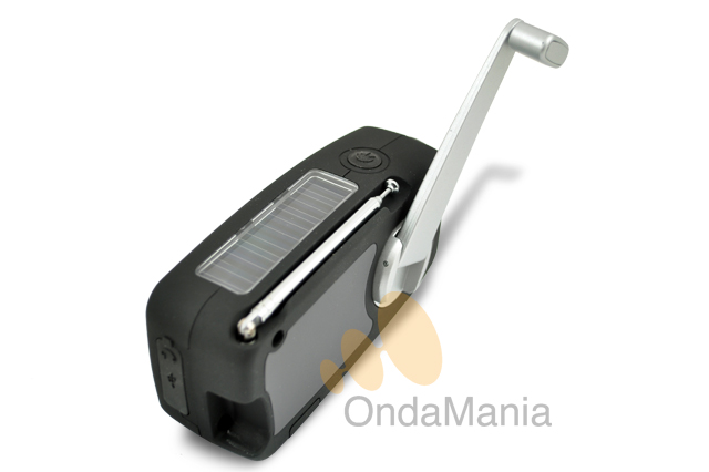 Radio con AM, FM y onda corta, con luz de emergencia, dinamo de carga (manivela), toma USB para carga del móvil, puede funcionar con baterías de Ni-Mh y pilas (no incluidas).