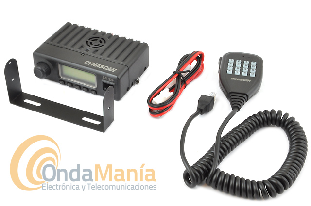 Artículos suministrados: Transceptor móvil Dynascan M24, cable de alimentación, soporte de montaje, tornillos para soporte de montaje, micrófono con teclado DTMF, manual de istrucciones en castellano.