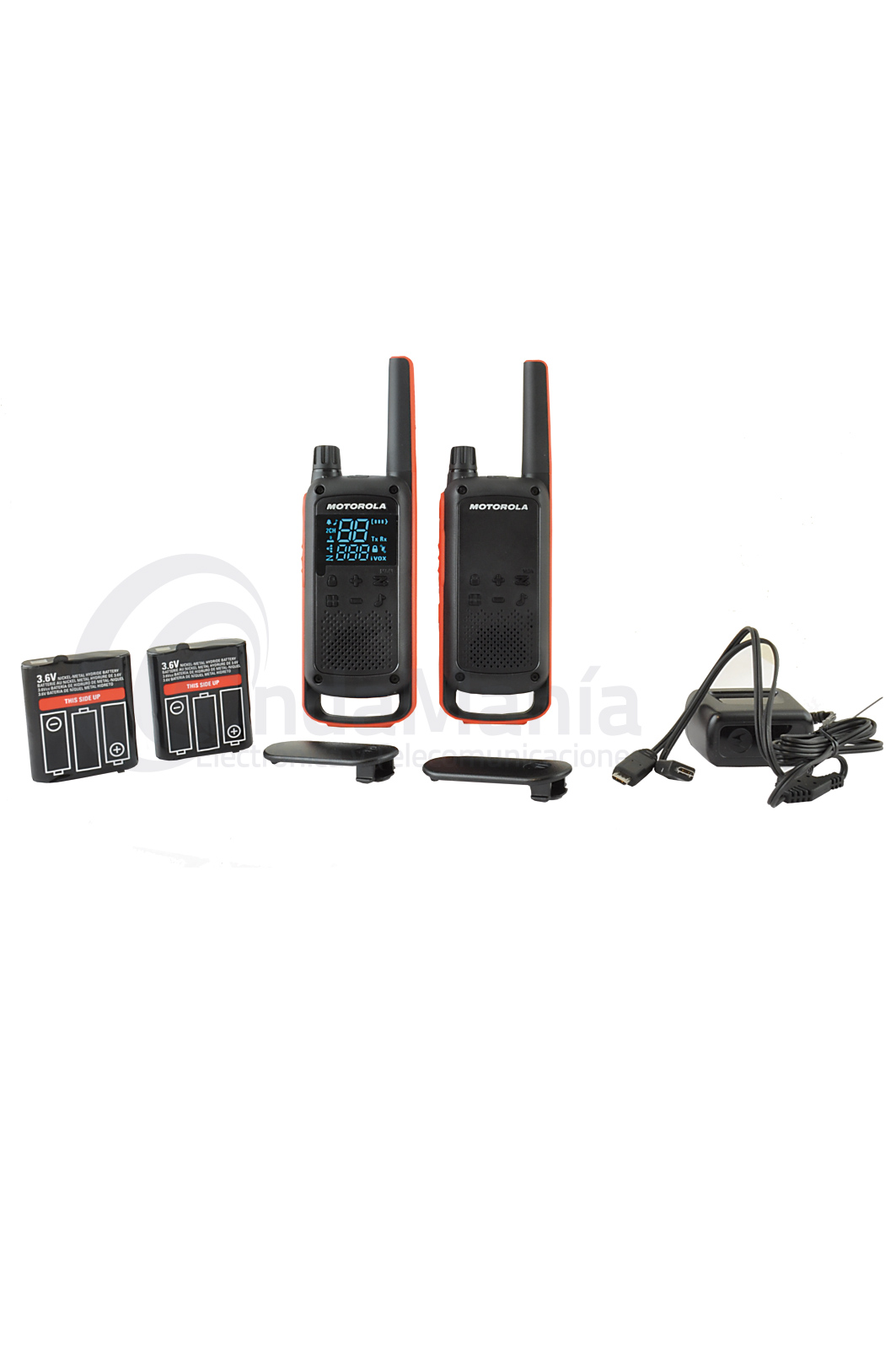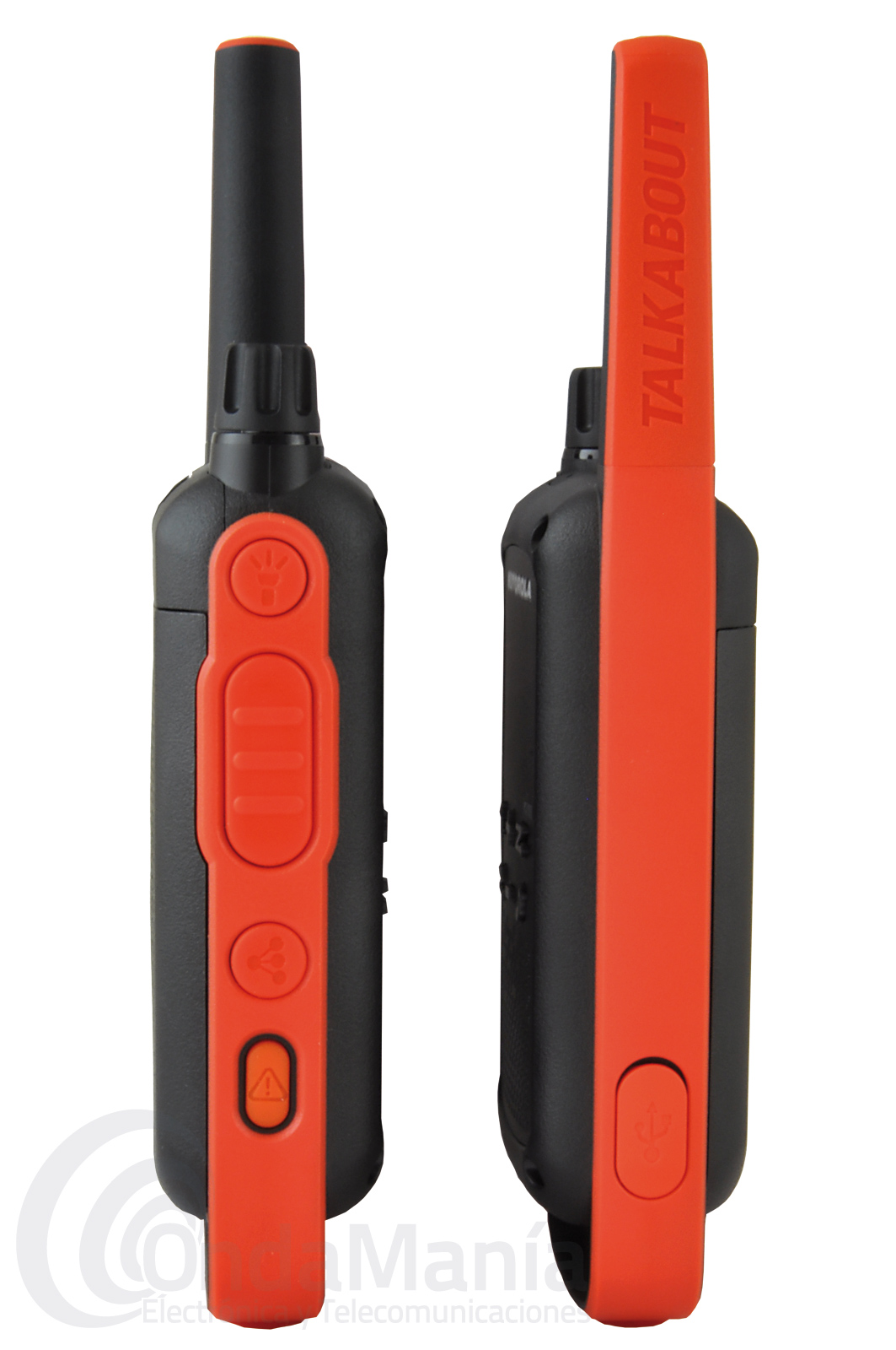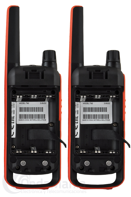 Pareja de walkys PMR-446 Motorola Talkabout T-82 con grandes funciones como aviso por vibración, función VOX, control automático del silenciador,… compatible con cualquier otro modelo de Motorola y el resto de equipos PMR-446, incluye baterías, cargador doble USB y clip de cinturón.
