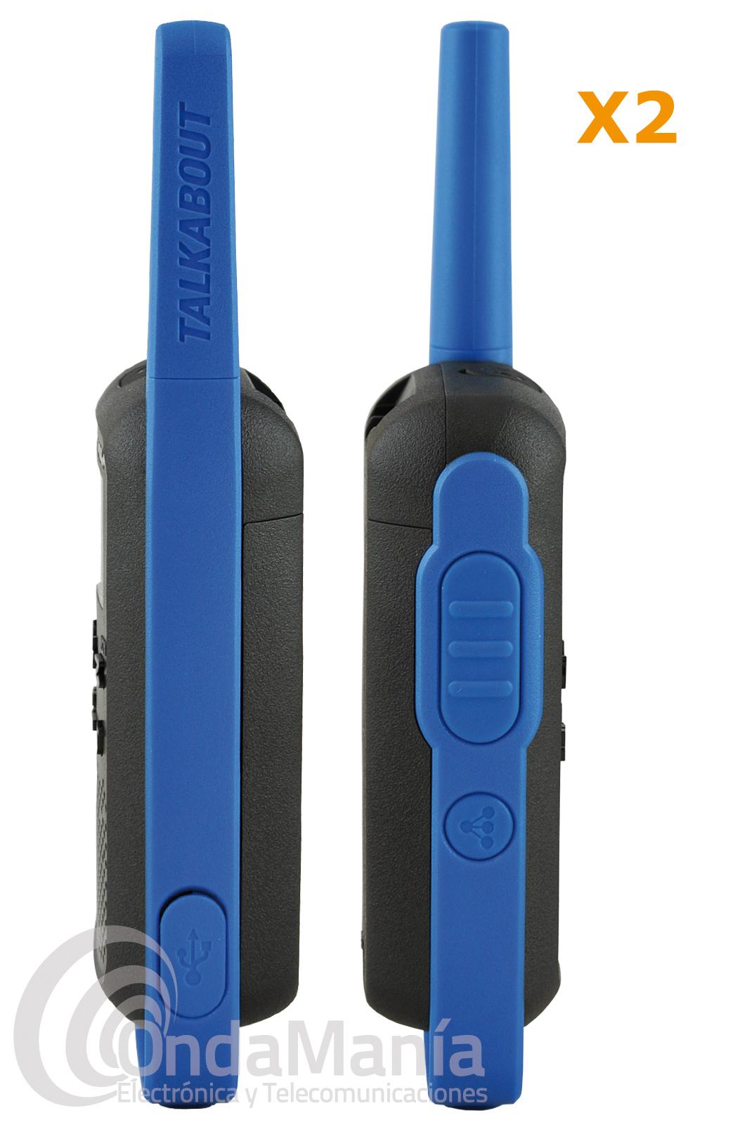 La pareja de PMR-446 de uso libre TLKR T-62 azul es el sustituto natural de los T-60, son compatibles con todos los modelos anteriores de las series de Molorola TLKR, incluyen baterías, cargador doble de pared y clips de cinturón.
