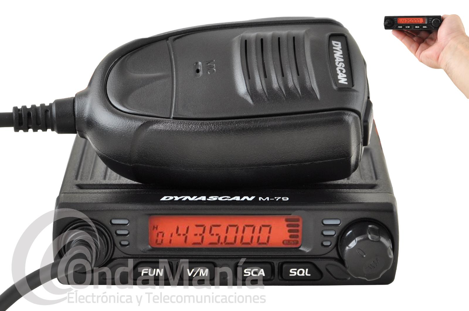 Emisora móvil de UHF comercial de 400 a 470 Mhz Dynascan M-79U, dispone de múltiples y avanzadas funciones como 15, 10 y 5 W, tonos CTCSS, DCS, 199 canales, escaner de CTCSS y DCS,.... y un tamaño muy reducido.