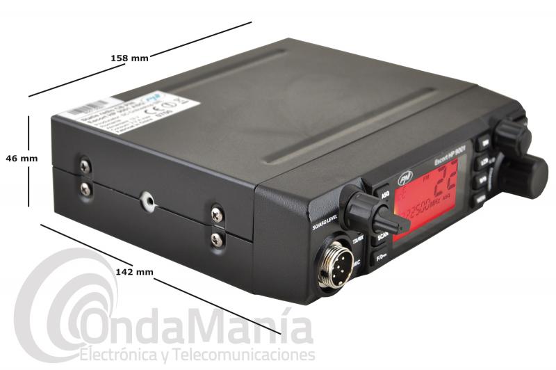 Emisora de banda ciudadana multinorma Europea con 40 canales en AM y FM, dispone de squelch automático ASQ y squelch manual, escáner, dispone de un gran display LCD con 8 colores diferentes de retroiluminación, memorias, control de RF, doble escucha, función ANL, acceso directo a canal 9 y 19, subida y bajada de canales desde el micrófono, indica en su display LCD multiples funciones como el canal y la frecuencia correspondiente al canal utilizado. Incluye toma de encendedor para una rápida instalación.