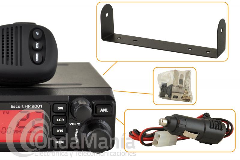 El pack incluye: emisora PNI Escort HP-9001ASC, micrófono, soporte para emisora y soporte para micrófono, tornillos y manual de instrucciones en castellano.