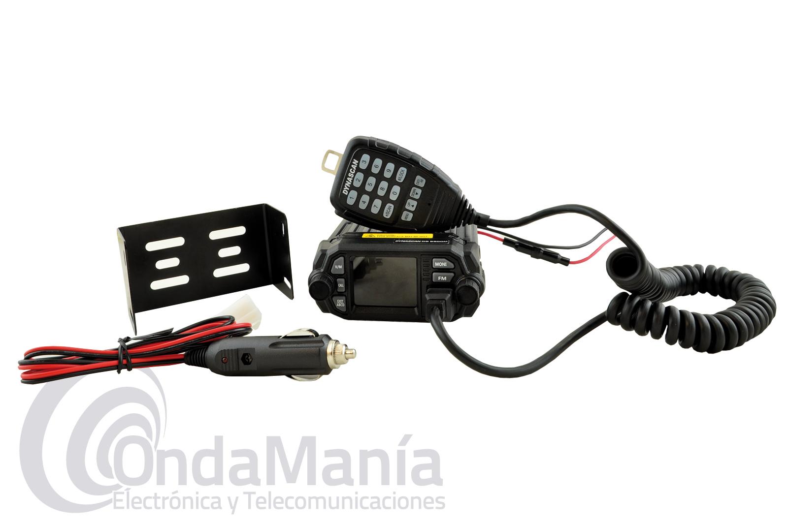 El pack incluye: emisora Dynascan DB-9900M, micrófono DTMF, soporte para la emisora, soporte de micrófono, cable de alimentación con conector de mechero y manual de instrucciones en castellano.