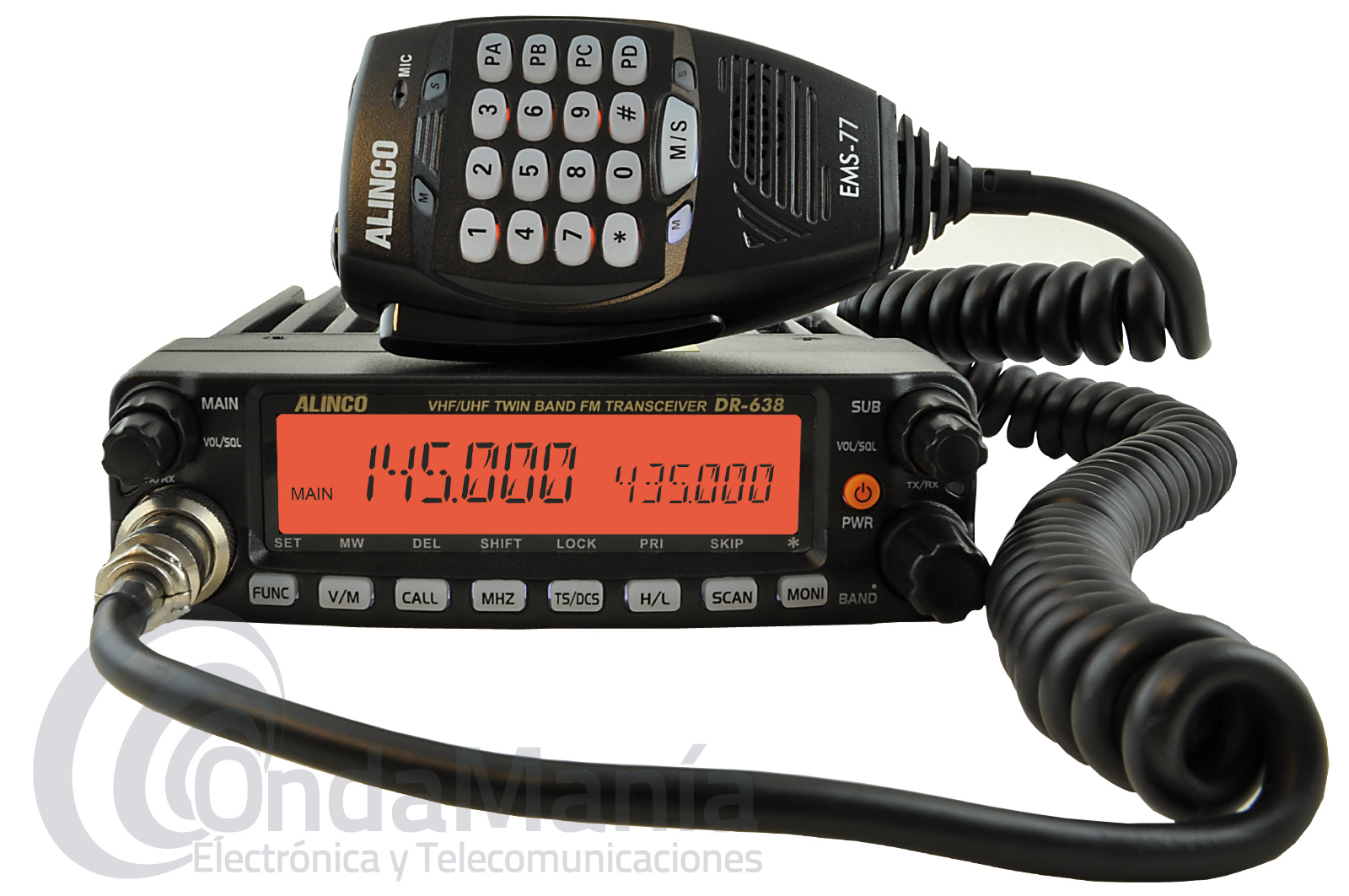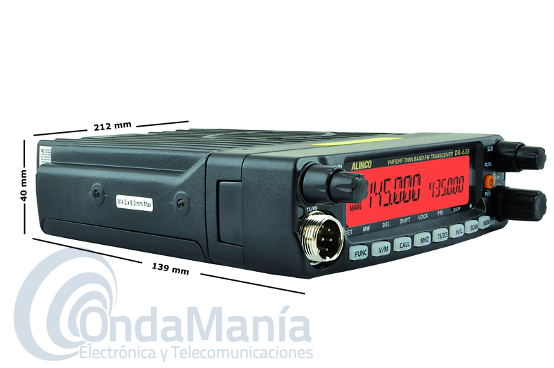 Nueva y renovada versión del Alinco DR-635 ahora llamado DR-635HE es un transceptor doble banda VHF/ UHF con una potencia máxima de 50 W en VHF y 40 W en UHF, dispone de un gran display alfanumérico, 758 canales de memoria, múltiples y desmultiplicados saltos frecuencia, normas MIL-STD810,....