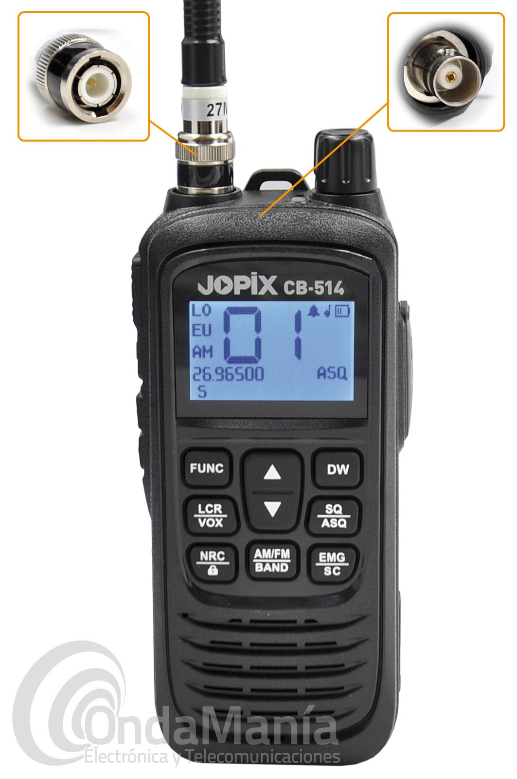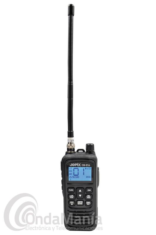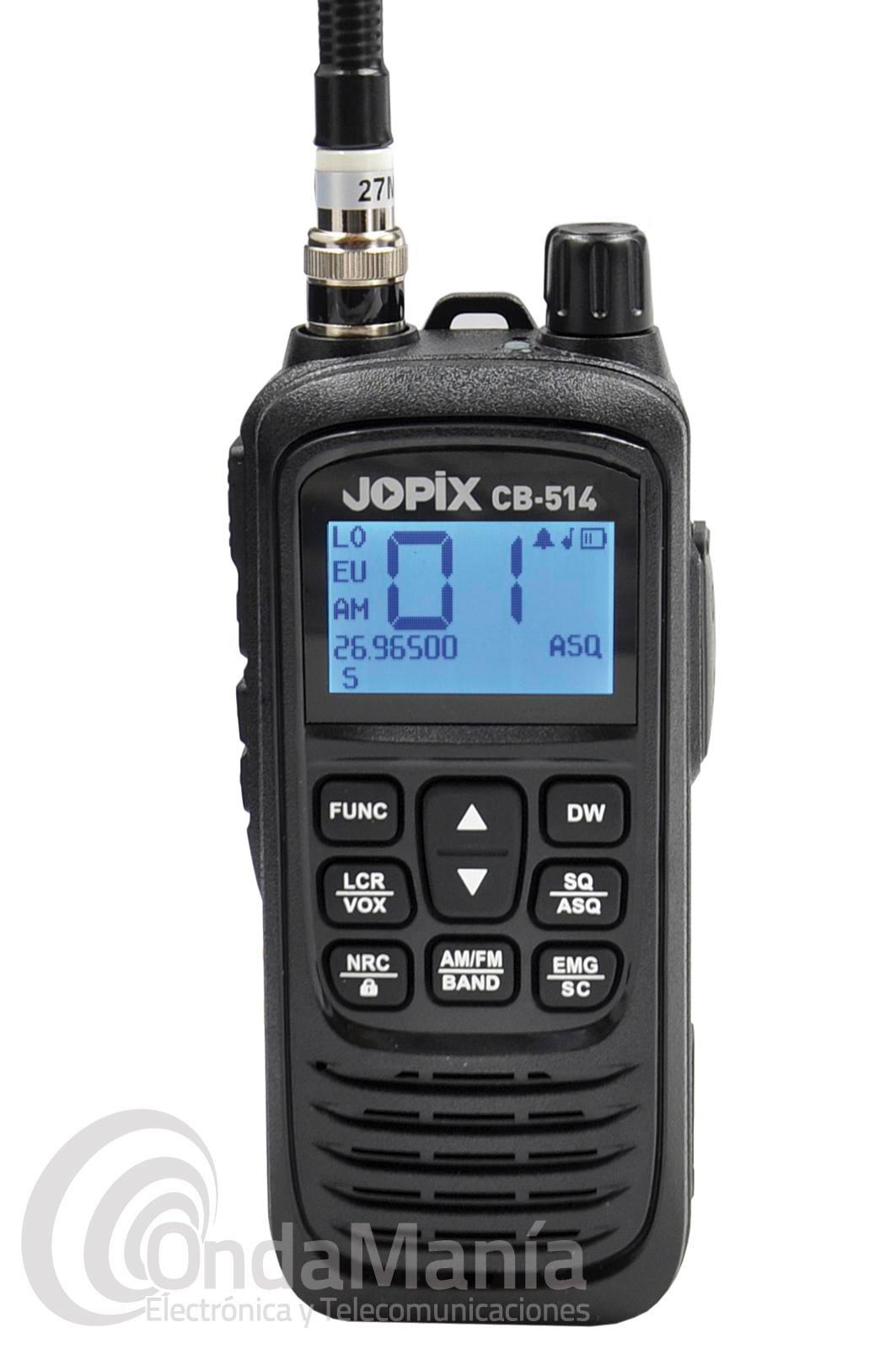 WALKIE TALKIE DE BANDA CIUDADANA CB-27 JOPIX CB-514+PINGANILLO+PORTES GRATIS - El Jopix CB-514 es un walkie talkie de banda ciudadana CB-27 que destaca por su amplia pantalla LCD, prestaciones avanzadas y la nitidez de su sonido gracias a su tecnología NRC (Circuito de reducción de ruido).  Este walkie talkie de CB-27 permite comunicarse en las modalidades de AM y FM en todo el rango de frecuencias CB 27 MHz. Al ser multi-norma, puede operar en varias bandas de frecuencia utilizadas en diferentes países de Europa. PINGANILLO DE REGALO.