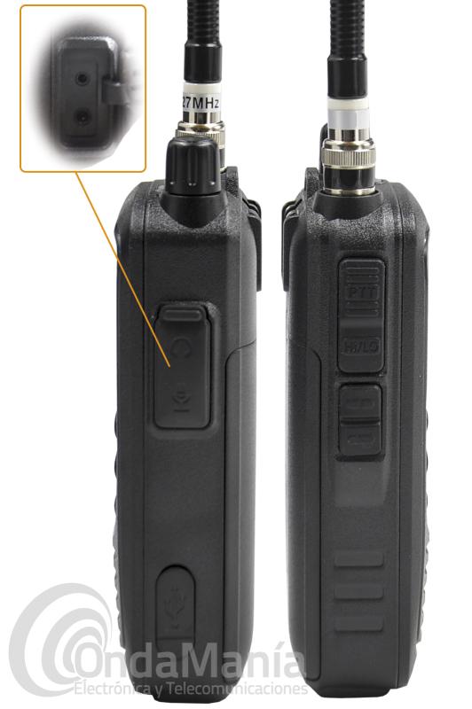 El Jopix CB-514 puede ser utilizado como un equipo portátil con su antena BNC de 25 cm o bien, como una emisora móvil, conectando el kit para coche (INCLUIDO) que incluye: adaptador de toma de mechero, soporte de fijación y conector para antena externa.