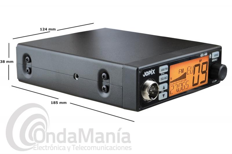 Transceptor de banda ciudadana CB-27 Jopix GS-60 con gran display LCD con 7 colores, multifunción con s-meter, indicación de canal y frecuencia,...AM y FM, función scan, ASQ, canal 9 y 19 directos,....