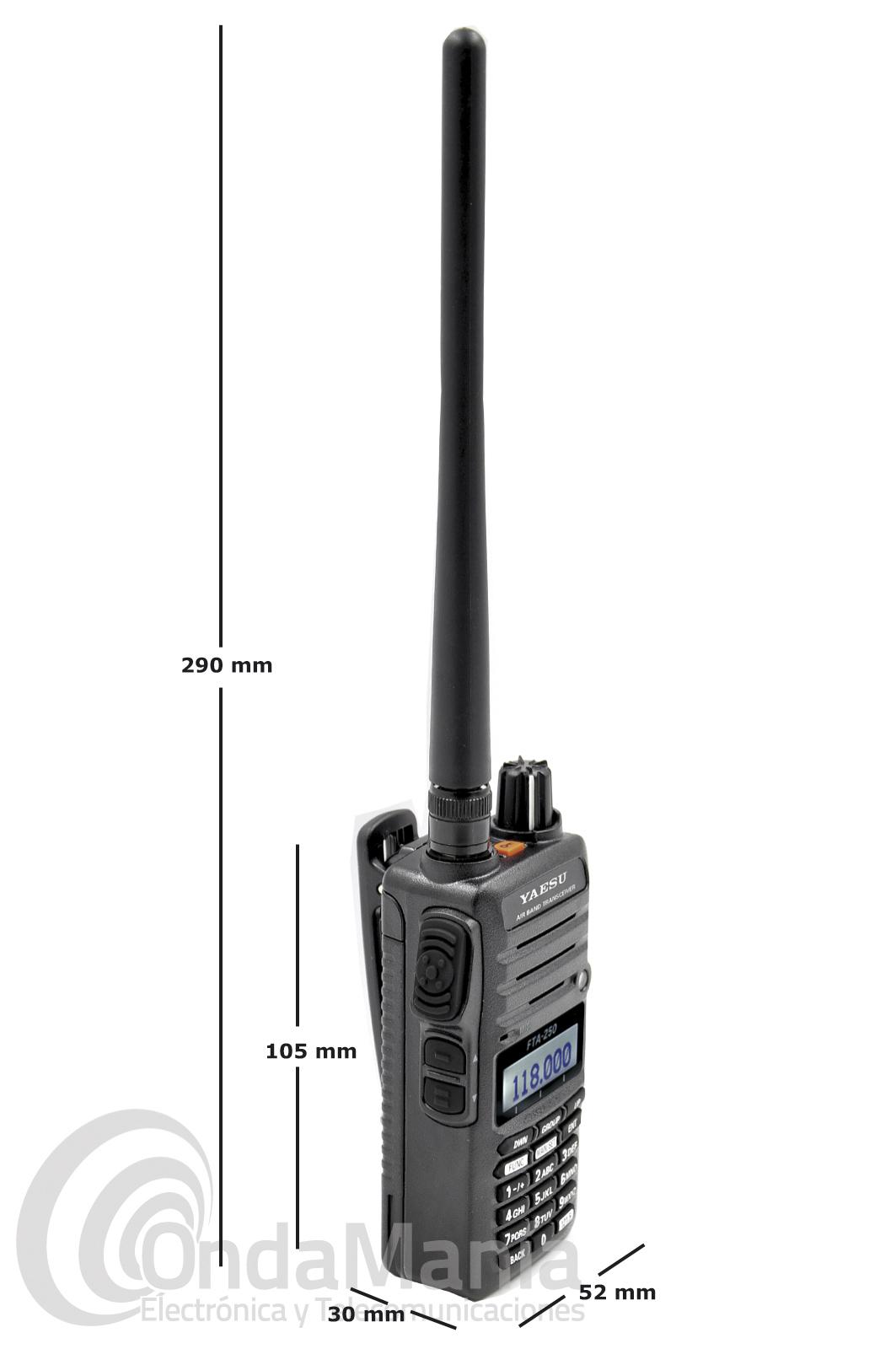 El Yaesu FTA-250L es un walkie talkie de aeronáutica, banda "COM" de 118 a 136.975 Mhz.