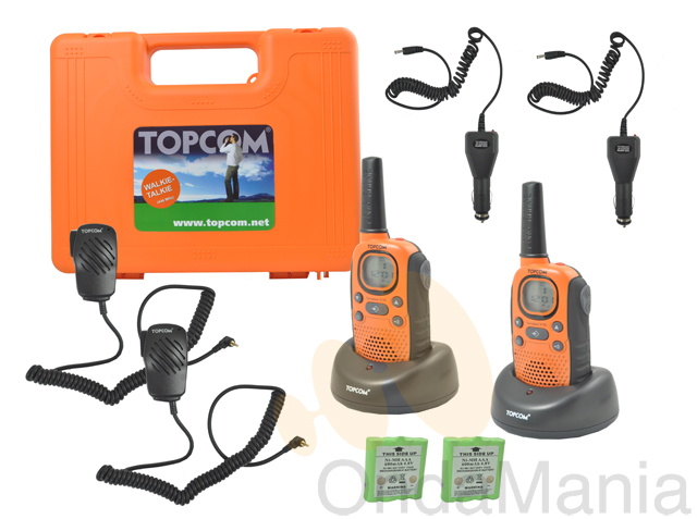 La pareja de PMR Twintalker 9100 Long Range incluyen baterías y cargadores individuales para casa 220 V y para coche 12V, dos micrófono altavoces, caja de transporte, vibración, 5 tonos de llamada y múltiples funciones.