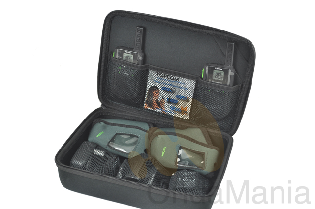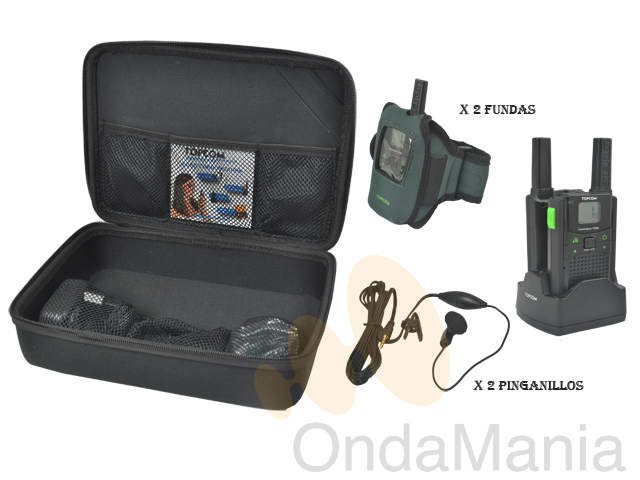 El pack incluye: 2 portátiles PMR, 2 fundas protectoras para el brazo, 2 micro-auriculares, 2 pack de baterías recargables de Li-Ion, 1 cargador doble con adaptador de 220V, caja de transporte tipo a las cajas de herramientas.