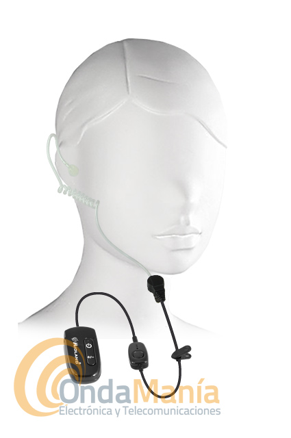 Micrófono auricular acústico y transparente con auricular de tubo de aire inta-auditivo y PTT, requiere el Midland WA-Dongle o el WA-Dongle K.