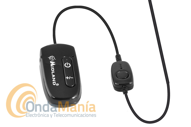 Micrófono auricular Bluetooth con auricular con sujeción a la nuca y micrófono tipo boom (tipo Madonna) incluye PTT, requiere el Midland WA-Dongle o el WA-Dongle K.