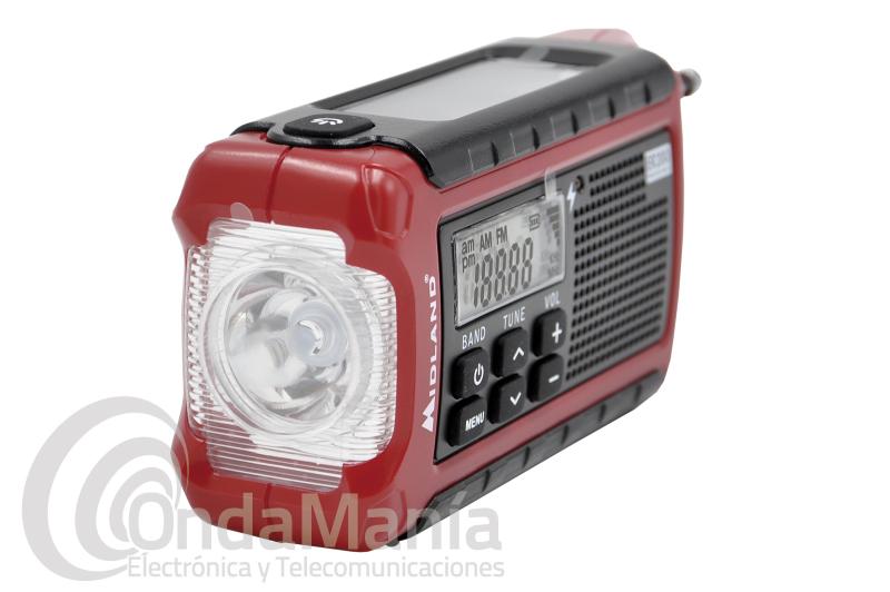 De tamaño compacto, el Midland ER200 es un excelente compañero para todos los excursionistas, capaz de recargar dispositivos portátiles. También está equipado con un receptor AM/FM y linterna LED.