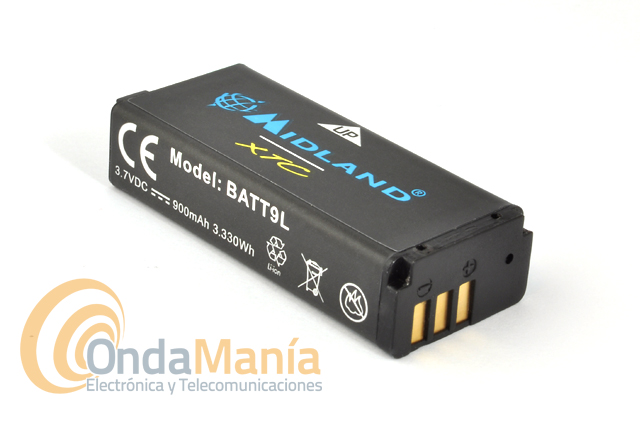 Batería de repuesto de litio para la cámara Midland XTC-200 con 3.7 V, 900 mAh y 3330 Wh.
