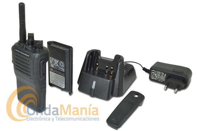 El pack incluye: Walki Yaesu VX-241, batería de Ion-Litio de 7,4 V y 1380 mAh, clip de cinturón, cargador rápido de sobremesa con alimentador AC/DC y manual básico de instrucciones en castellano.