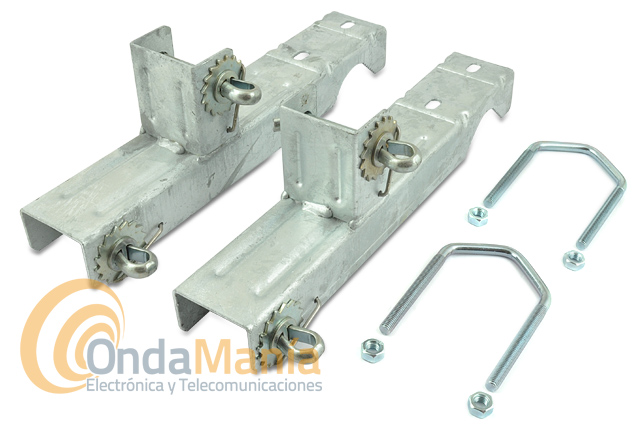 Pareja de soportes de chimenea con garra galvanizada para mástil, incluye 25 mts de fleje de sujección.
