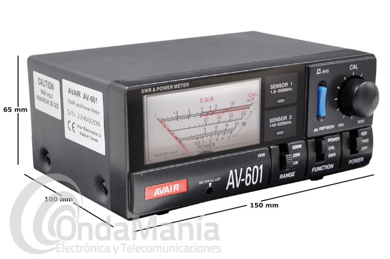 El Avair AV-601N es ideal para operadores de HF y VHF y nos ofrece precisiones del 5 % en 5W, de 7,5% en 20 W y del 10% en 200W. Dispone de conexiones N y PL (UHF)