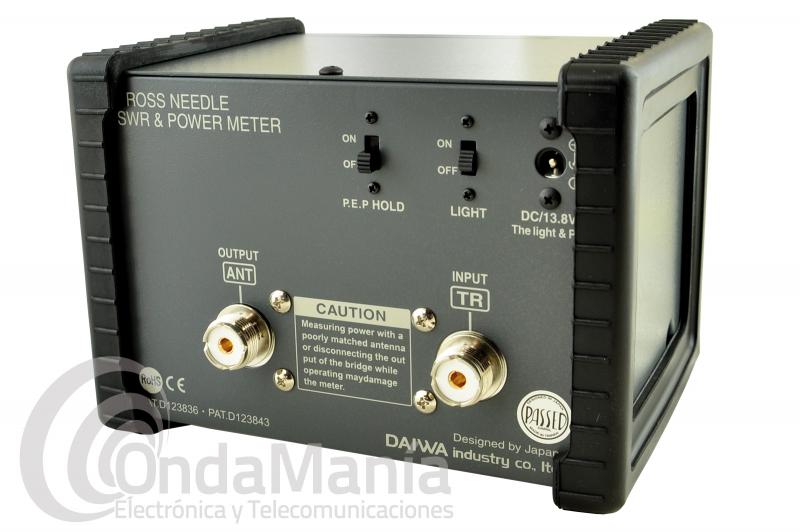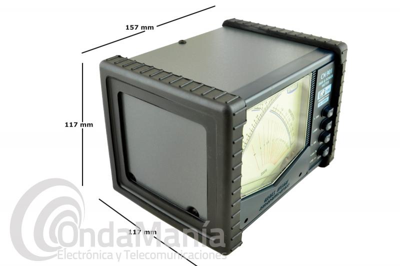 Medidor de estacionarias y watímetro con un rango de frecuencia de 1,8 a 200 Mhz y un rango de potencia de 20 – 200 – 2000 W, con conectores PL y requiere 13,8 VCC para funcionar, incluye cable de alimentación.