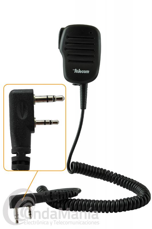 Micro-altavoz Telecom JD-5002 extraplano y resistente al agua IP-54, clip giratorio 360º en su parte trasera, compatible con equipos que dispongan conmutación tipo Kenwood como los: Kenwood, Team, HYT, Baofeng, Luthor, Wouxun, Kombix, algunos modelos de Midland,....