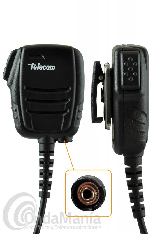Micro-altavoz Telecom JD-720-DMR con toma de auricular, PTT extraible para su limpieza, clip metálico giratorio y compatible con los equipos digitales de Motorola DP-3400, DP-3401, DP-3600, DP-3601....