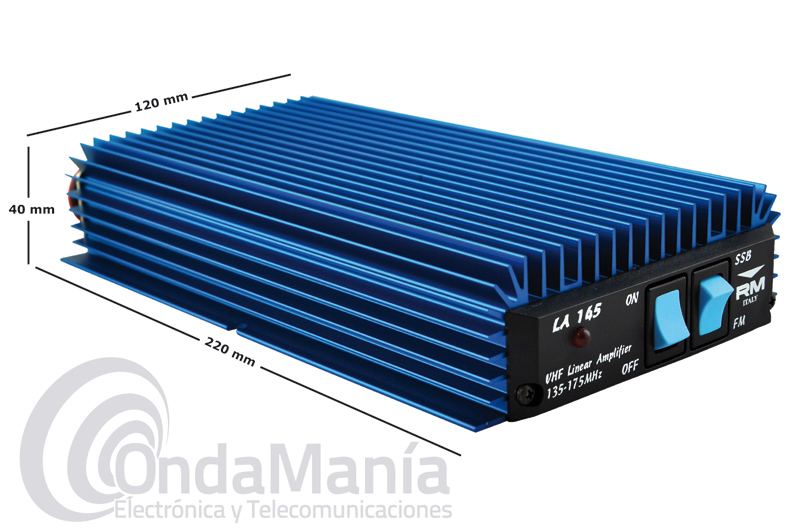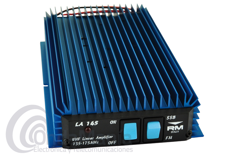 Amplificador lineal de VHF 135 a 175 Mhz, con una alimentación de 12 VCC y una potencia de entrada de 0,5 a 4 W y una salida aprox. de 85 W todo modo FM, SSB y CW.