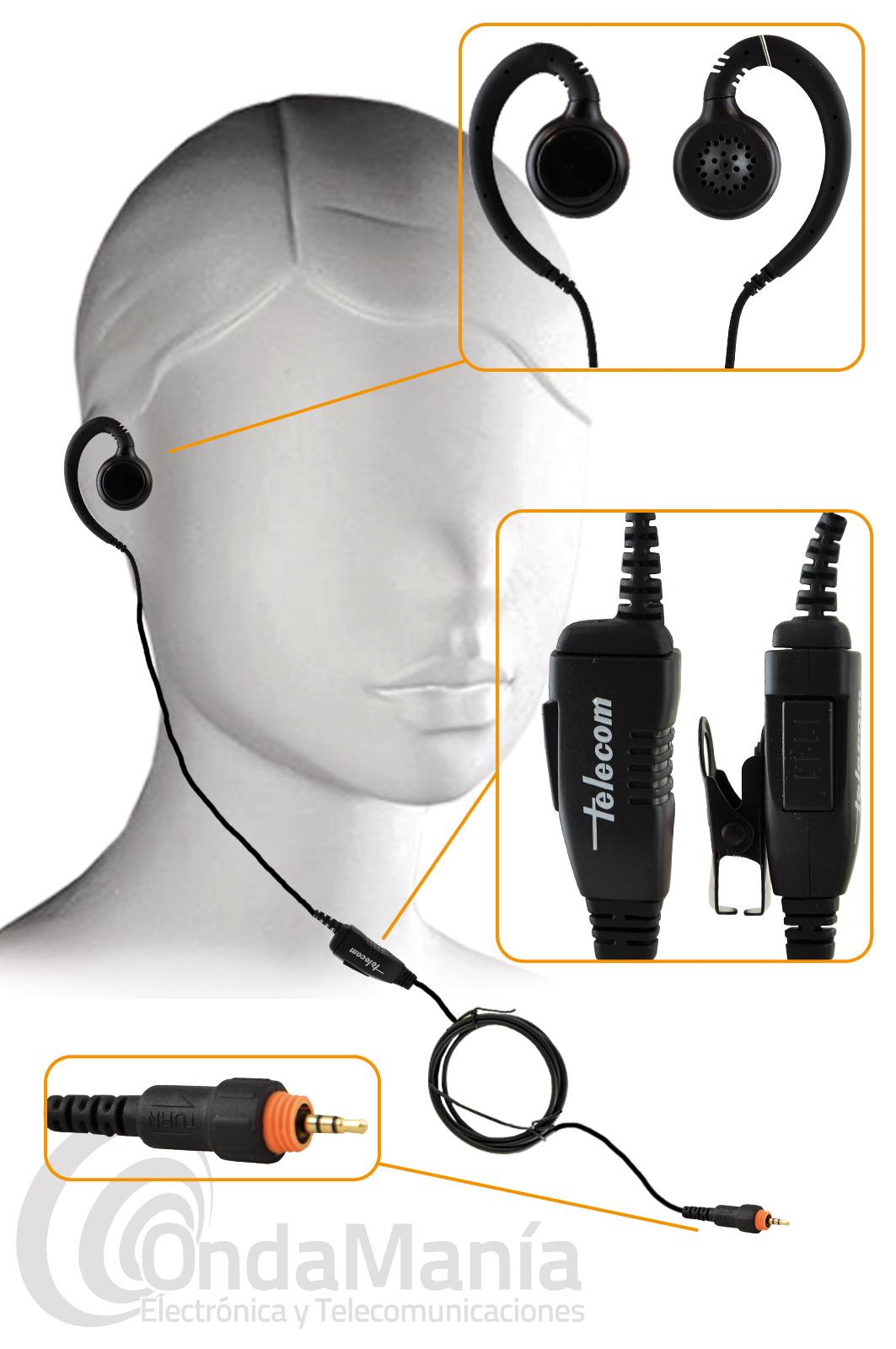 Telecom MAF-CR-CLP pinganillo o micro-auricular de alta resistencia y durabilidad con cable tipo tejido de fibra con PTT tipo solapa, orejera tipo C con mini altavoz de alta calidad, el micrófono incluye clip metálico para sujeción el la solapa compatible con los Motorola CLP-1010, CLP-1040, CLP-1060,...