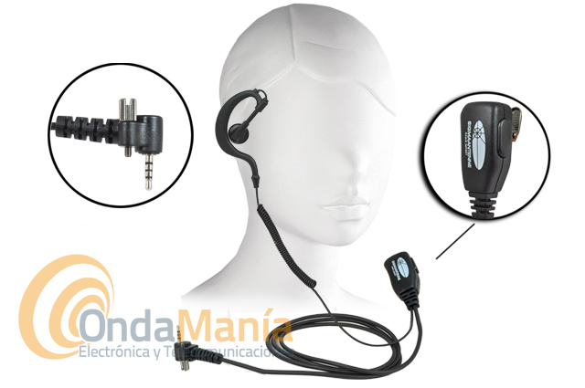 SARI, micro-auricular para Sepura SRP-2000 / 3000 / 3500 / 3800, con PTT de solapa, orejera tipo PY-29 y cable rizado. Versión 1 tornillo.