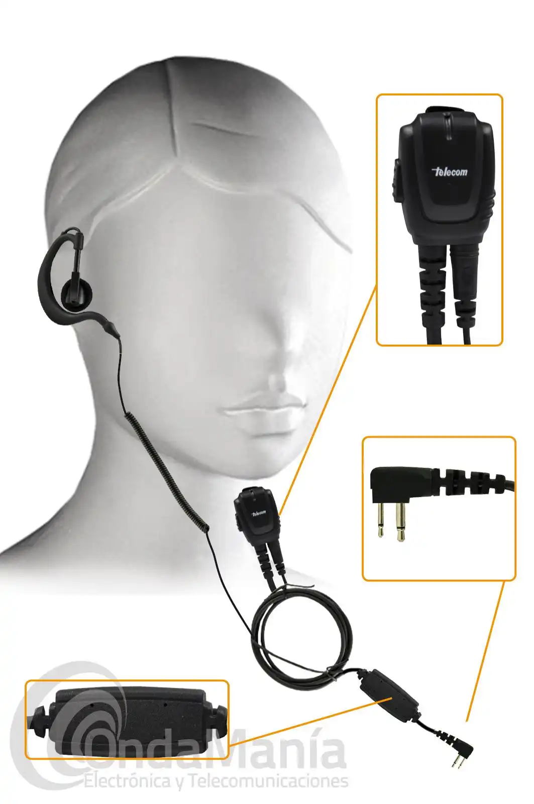 Micro-auricular o pinganillo Telecom de gama profesional, IP-54 con cable negro rizado en su auricular, compatible con los walkie talkies IC-A25CE, IC-A25C, IC-A25NE,..