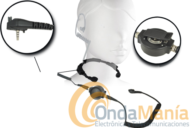 Laringófono profesional con dos captores, robusto y gran PLL circular y auricular tubular acústico transparente compatible con los Yaesu VX-146, VX-246, VX-351, VX-180,...
