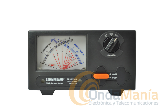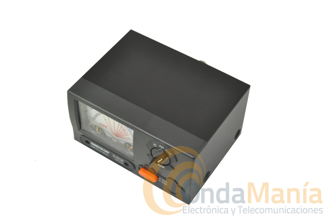 Medidor de estacionarias y potencia de agujas cruzadas con un margen de frecuencias de 125 a 525 Mhz. con tres escalas de potencia 2, 20 y 200 W, con dos tomas traseras con conectores N.
