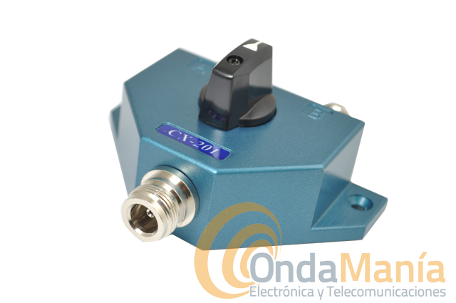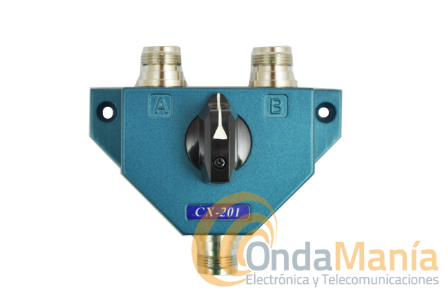 El CX-201N es un conmutador coaxial de baja perdida con conectores N, dispone de 1 entrada y dos salidas, con un rango de frecuencia de hasta 600 Mhz., con una potencia máxima de 1KW en CW y una impedancia de 50 Ohm.