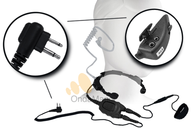 PC-LG03 Laringófono doble con auricular acústico transparente de silicona, el laringófono incluye dos PTT uno incluido en el cable y otro para adaptar mediante "belcro" (incluido) al dedo, al manillar de la biciclerta, moto,... ideal para la práctica de Airsoft, motociclismo, discotecas,... Incluye adaptador para utilizarlo con los Motrola GP-340 y GP-320.