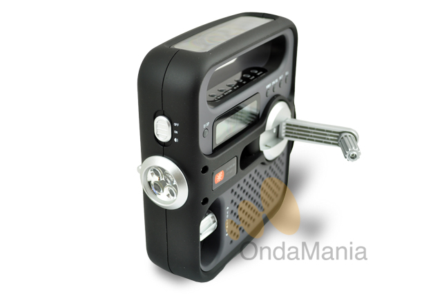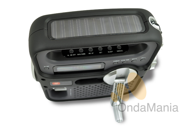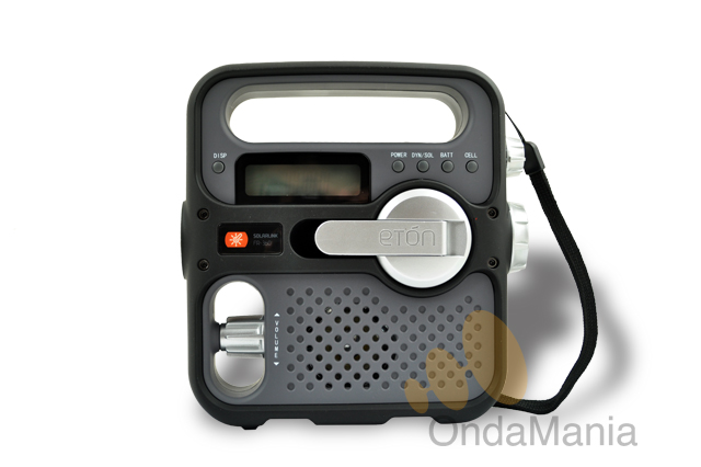 Radío digital eTón con AM, FM y Onda Corta, dispone de sintonia digital y cautro tipos de carga: baterías de Ni-Mh, dinamo (manivela), pilas (no incluidas), alimentación externa y placa solar. Dispone de toma USB para carga de teléfono móvil.