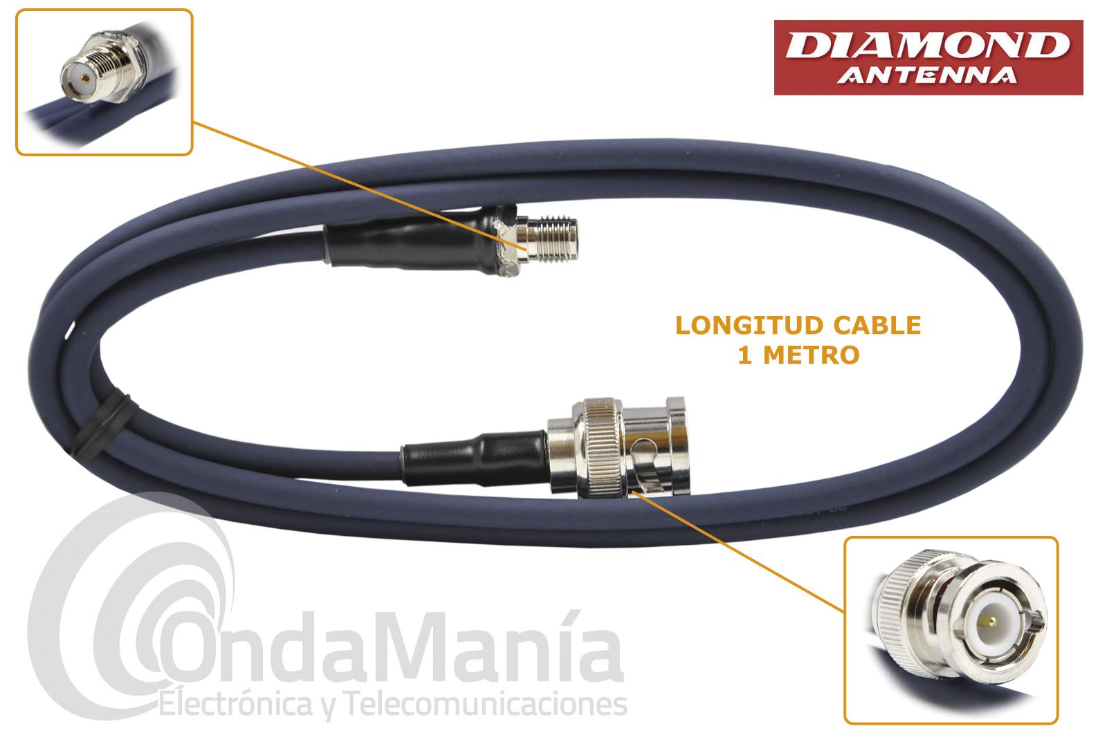 Latiguillo de baja perdida con un metro de longitud con un conector BNC macho y un conector SMA hembra en cada extremo del cable.
