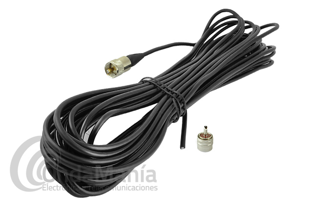 Prolongador con 16 metros de cable RG-58 y dos conectores tipo PL macho, el cable lleva los 1 conector instalado.