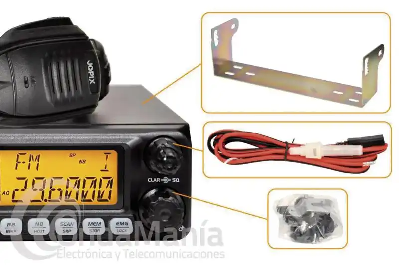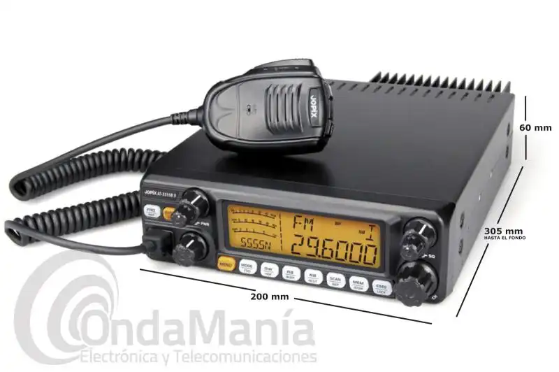 La Jopix AT-5555N II es una emisora móvil multi-modo para la banda HF de 10 metros que nos permite operar en diversos modos: FM, AM, SSB, CW y PA, y que destaca entre otros aspectos, por su amplia y clara pantalla LCD alfanumérica con indicador gráfico de SWR y de intensidad de Tx y Rx.